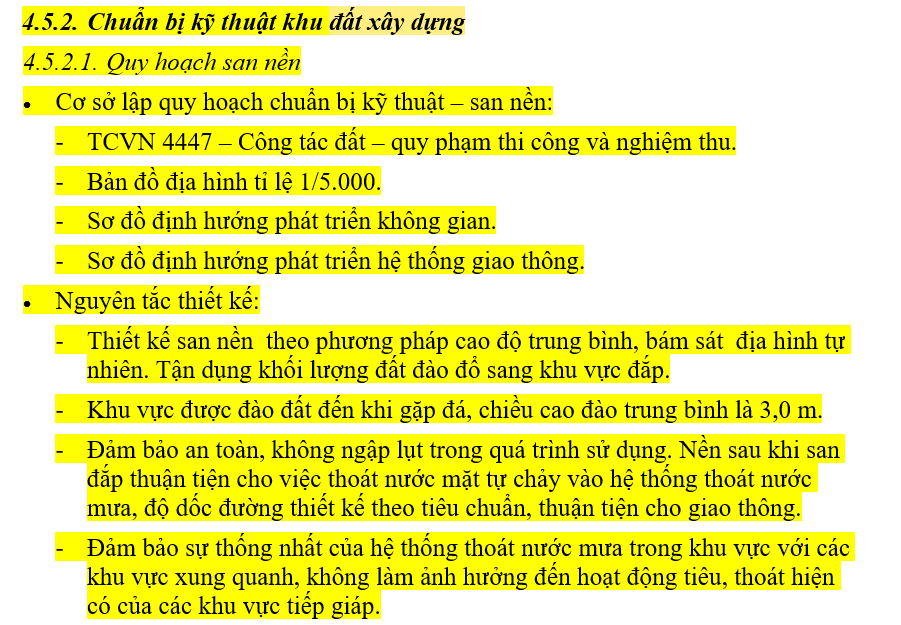 + Cao độ nền xây dựng hiện trạng của khu vực lập quy hoạch cụ thể như sau: Các khu dân cư trong địa bàn xã xây dựng tâp trung, cao độ nền từ 8,0m ÷ 10,0m.