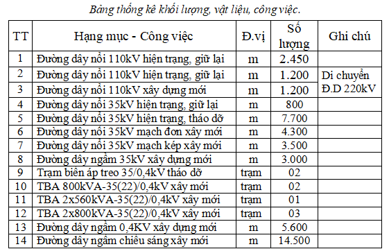 * Hệ thống hạ tầng kỹ thuật: