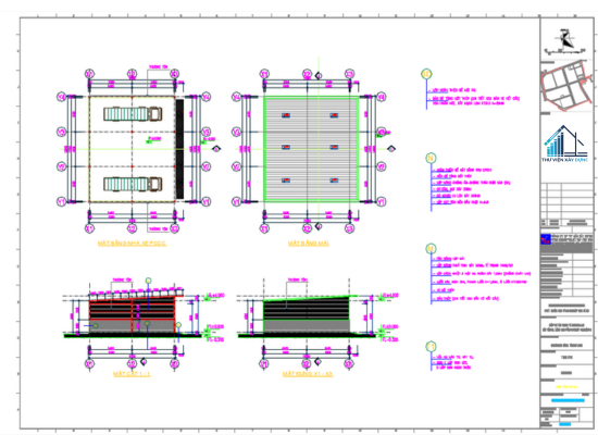 + Sơ đồ chi tiết nhà để xe PCCC chuyên ngành bản vẽ thi công trạm bơm Kim Bảng