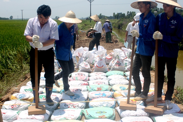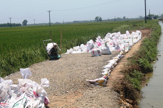 Thi công đường bằng công nghệ túi đất tại xã Tân Ước, huyện Thanh Oai, |