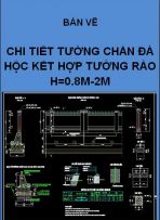 Bản vẽ chi tiết tường chắn đá hộc kết hợp tường rào H=0.8-2m bao gồm các bản vẽ sau: