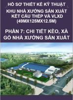 Hồ sơ thiết kế kỹ thuật Khu nhà xưởng sản xuất kết cấu thép và vật liệu xây dựng – kích thước 49M x 125M x 12.5M – Phần 7: Chi tiết kèo, xà gồ, cửa mái nhà xưởng sản xuất chính bao gồm đầy đủ các nội dung như: