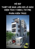 Hồ sơ thiết kế kiến trúc nhà liên kế lô góc có diện tích 110m2, thành phần hồ sơ bao gồm: