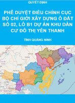 + Quyết định Số: 3333/QĐ-UBND Về việc phê duyệt Điều chỉnh cục bộ chỉ giới xây dựng ô đất số 02, lô B1, dự án Khu dân cư đô thị Yên Thanh, phường Yên Thanh, thành phố Uông Bí, tỉnh Quảng Ninh
