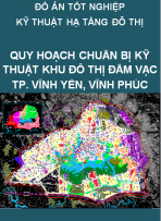 Đồ án tốt nghiệp kỹ thuật hạ tầng đô thị – Quy hoạch chuẩn bị kỹ thuật Khu đô thị Đầm Vạc, thành phố Vĩnh Yên bao gồm hai phần là: Bản vẽ (định dạng autocad) và thuyết minh (định dạng Word) bảng tính toán thủy lực (định dạng Excel):