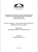 This document consists of a comprehensive design example of a prestressed concrete girder bridge. The superstructure consists of 2 simple spans made continuous for live loads. The substructure consists of integral end abutments and a multi-column intermediate bent. The document also includes instructional commentary based on the AASHTO-LRFD Bridge Design Specifications. The design example and commentary are intended to serve as a guide to aid bridge design engineers with the implementations of the AASHTO-LRFD Bridge Design Specifications. This document is offered in Standard International Unit (SI). An accompanying document in US Customary Units is offered under report No. FHWA NHI-04-043