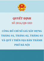 Quyết định số 2816/QĐ-SXD ngày 29/4/2014 của Sở Xây dựng thành phố Hà Nội về việc công bố Chỉ số giá xây dựng tháng 01, 02, 3 và quý I năm 2014, làm cơ sở để các tổ chức, cá nhân tham khảo, sử dụng vào việc xác định, điều chỉnh tổng mức đầu tư, dự toán xây dựng công trình, giá hợp đồng xây dựng và quản lý chi phí đầu tư xây dựng các công trình sử dụng vốn ngân sách trên địa bàn thành phố Hà Nội.