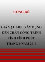 Công bố số 2136/CBLS-XD-TC ngày 04 tháng 10 năm 2013 của liên sở Tài chính – Xây dựng tỉnh Vĩnh Phúc công bố bảng giá vật liệu xây dựng đến chân công trình tháng 9 năm 2013, làm căn cứ cho các tổ chức, cá nhân tham khảo, lập và quản lý chi phí đầu tư xây dựng đối với các công trình xây dựng trên địa bàn tỉnh Vĩnh Phúc.