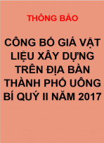 - Công bố giá vật liệu xây dựng lưu thông trên thị trường trên địa bàn thành phố Uông Bí thời điểm tháng 6 năm 2017, được ban hành kèm theo văn bản. Làm cơ sở để các tổ chức, cá nhân có liên quan tham khảo trong quá trình lập và quản lý chi phí đầu tư xây dựng công trình.