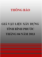 Thông báo số 1328/TB-LS ngày 04 tháng 6 năm 2013 của liên sở Tài chính – Xây dựng tỉnh Bình Phước Thông báo giá vật liệu xây dựng tháng 4 năm 2013, làm căn cứ cho các tổ chức, cá nhân tham khảo, lập và quản lý chi phí đầu tư xây dựng đối với các công trình xây dựng trên địa bàn tỉnh Bình Phước.