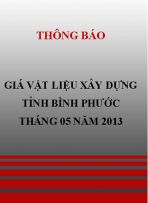 Thông báo số 1623/TB-LS ngày 03 tháng 7 năm 2013 của liên sở Tài chính – Xây dựng tỉnh Bình Phước Thông báo giá vật liệu xây dựng tháng 5 năm 2013, làm căn cứ cho các tổ chức, cá nhân tham khảo, lập và quản lý chi phí đầu tư xây dựng đối với các công trình xây dựng trên địa bàn tỉnh Bình Phước.