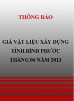 Thông báo số 1724/TB-LS ngày 16 tháng 7 năm 2013 của liên sở Tài chính – Xây dựng tỉnh Bình Phước Thông báo giá vật liệu xây dựng tháng 6 năm 2013, làm căn cứ cho các tổ chức, cá nhân tham khảo, lập và quản lý chi phí đầu tư xây dựng đối với các công trình xây dựng trên địa bàn tỉnh Bình Phước.