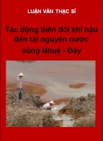 Ngày nay, với sự tiến bộ của khoa học – kỹ thuật, con người có thể được đáp ứng được các nhu cầu của mình với lợi ích thiết thực. Con người có thể liên lạc được với nhau ở những nơi rất xa bằng điện thoại di động. Truy cập thông tin mọi lúc mọi nơi với kết nối internet. Di chuyển trên bầu trời vòng quanh thế giới bằng máy bay. Thậm chí vươn ra khỏi Trái đất, khám phá các hành tinh xa xôi mà ngày xưa tưởng như là không thể. Tuy nhiên, cùng với lợi ích là những tác động tiêu cực tới môi trường sống của tất cả các loài sinh vật và bầu khí quyển của trái đất. Đó là những hiện tượng về biến đổi khí hậu, sự nóng lên của trái đất hay nước biển dâng. Cùng với sự biến đổi khí hậu toàn cầu, Việt Nam là một trong những nước chịu ảnh hưởng nặng nề nhất. .. Trong bài tiểu luận này chúng ta cùng tìm hiểu về biến đổi khí hậu vgay anh hưởng đến tài nguyên nước ở sông Nhuệ thành phố Hà Nội