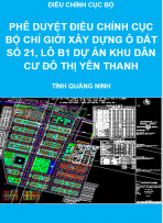 - Được phê duyệt tại: QĐ Số: 1562/QĐ-UBND Về việc phê duyệt Điều chỉnh cục bộ chỉ giới xây dựng ô đất số 21, lô B1, dự án Khu dân cư đô thị Yên Thanh, phường Yên Thanh, thành phố Uông Bí