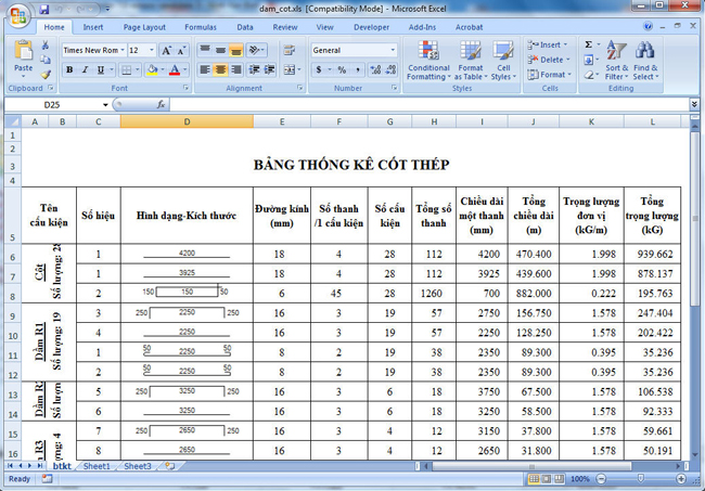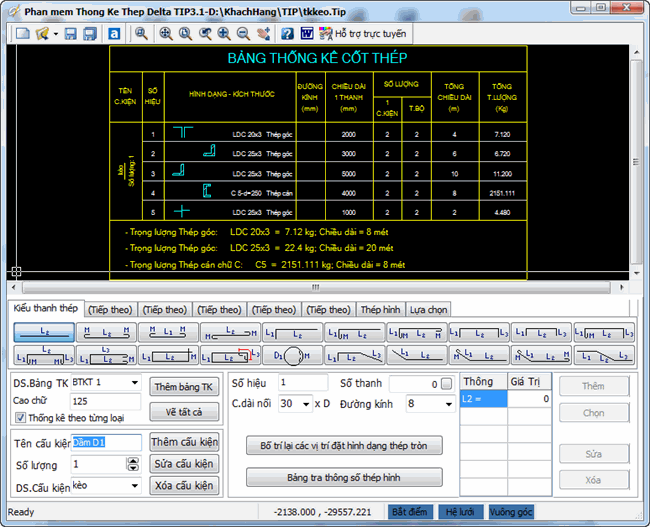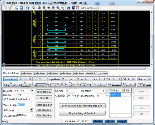 - Chỉnh sửa một số lỗi nhỏ khi thống kê chiều dài thanh thép.