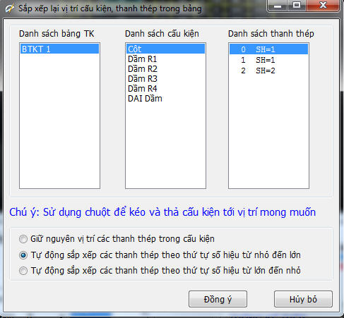 - Thêm chức năng người dùng có thể tùy chỉnh thay đổi, sắp xếp lại vị trí cấu kiện, thanh thép trong bảng thống kê.