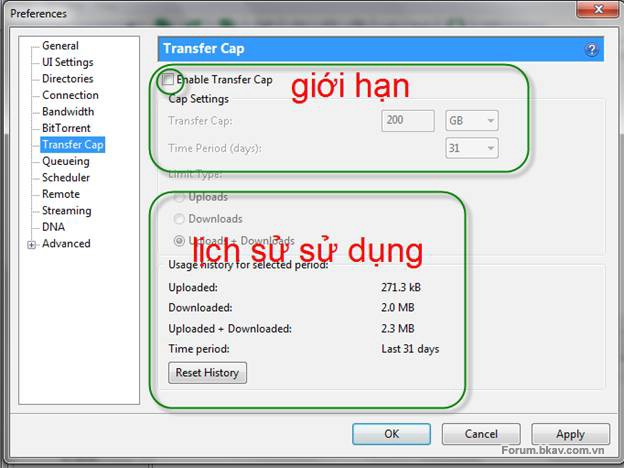 Giới hạn dung lượng sử dụng trong 1 khoảng thời gian, và xem lịch sử đã dùng.