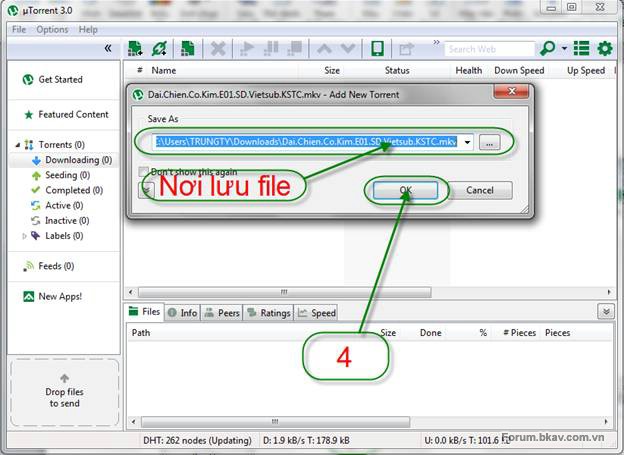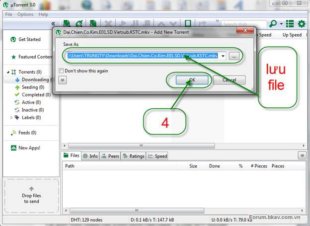 + Cách 2: Bạn hãy yên tâm kích vào đó để save file torrent đó về máy tính của bạn dưới dạng file *.torrent (file này chỉ là dữ liệu chứa thông tin download)