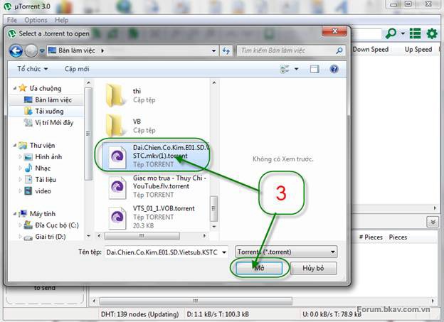 Tiếp đến bạn chọn cái file.torrent mà chúng ta vừa tải về