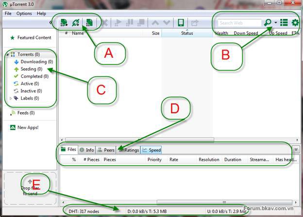 uTorrent gồm có các phân vùng: