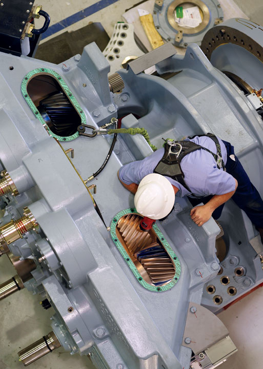 - Brake: Bộ hãm (phanh). Dùng để dừng rotor trong tình trạng khẩn cấp bằng điện, bằng sức nước hoặc bằng động cơ.