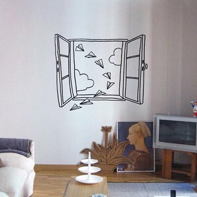 Hãy trải rộng thêm không gian sống của bạn bằng decal dán tường hình cửa sổ. Sự giản dị của hình vẽ ô cửa sổ sẽ mở ra những cuộc phiêu lưu mới và khiến những bức tường khô cứng thêm mềm mại. Những hình dán này phù hợp để trang trí cả nhà riêng lẫn quán cafe.