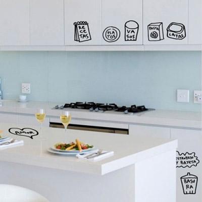 Ngay cả với những bà nội tướng, chiếc bếp tưởng như đã vô cùng quen thuộc đôi khi vẫn trở nên rối rắm với hàng trăm thứ đồ linh tinh. Vậy tại sao bạn lại không biến bếp thành một nơi hấp dẫn và sinh động với những hình đề can ngộ nghĩnh với tên các loại đồ đạc ở ngoài mặt tủ. Không chỉ đẹp mắt mà nó cũng giúp những người bạn bè hay các đức ông chồng dễ tìm đồ hơn khi phụ bạn nấu ăn đấy.