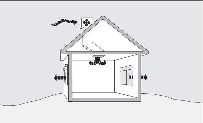 Quạt cục bộ có thể hút lượng khí từ cửa sổ mở và xả ra gác mái và mái. Giúp đối lưu trên gác mái tốt thêm vào việc đối lưu cục bộ. Có thể kiểm soát việc làm mát này đơn giản bằng cách đóng các cửa sổ trong khu vực không sử dụng và mở cửa sổ rộng với những khu vực sử dụng.