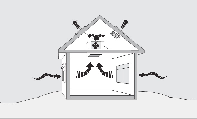 Nhiệt từ mặt trời thâm nhập qua mái nhà và bức xạ vào trong gác mái. Thông gió cho gác mái làm giảm nhiệt độ tại đây từ 10-25oC và làm chậm lại quá trình chuyển nhiệt vào trong không gian sống. Ngoài ra, cách hiệu quả nhất để giảm nhiệt độ trong gác mái là ngăn không cho nhiệt xam nhập vào bằng mái có hệ số phản xạ cao. Điều cũng rất quan trọng là phải có ít nhất cỡ 2.5cm lớp cách nhiệt trên gác mái.