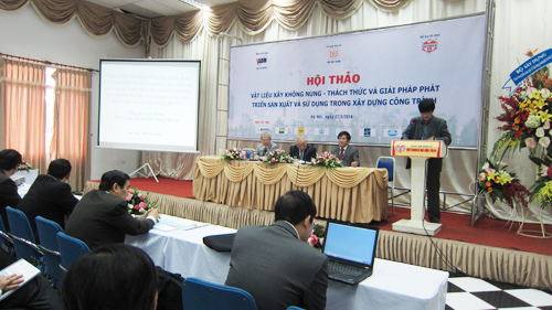 Phát biểu tại Hội thảo, Chủ tịch Hội VLXDVN Trần Văn Huynh cho biết: Chương trình phát triển Vật liệu xây không nung (VLXKN) thay thế gạch đất sét nung đã được các nhà đầu tư hăng hái hưởng ứng. Sau gần 4 năm thực hiện, đến nay đã có 12 nhà máy gạch bê tông khí chưng áp, công suất mỗi cơ sở từ 100.000 m3 – 300.000 m3/năm, với tổng công suất 1,95 triệu m3/năm và 30 cơ sở sản xuất bê tông bọt với tổng công suất là 0,473 triệu m3/năm, đưa tổng công suất bê tông nhẹ lên 2,423 triệu m3/năm, đã đưa vào sản xuất (tương đương 1,696 tỷ viên gạch quy tiêu chuẩn).