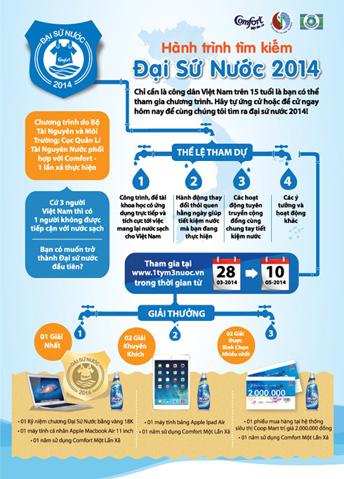 Là chủ điểm lớn nhất trong khuôn khổ chương trình đại sứ nước 2014, “Hành trình tìm kiếm đại sứ nước 2014” chính thức khởi động với sứ mệnh tìm kiếm và vinh danh những cá nhân hay tập thể có đóng góp tích cực cho việc bảo vệ nguồn nước của Việt Nam.